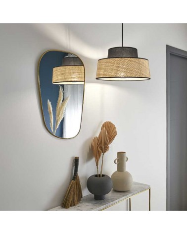 The 38cm diameter ceiling lamp has an elegant and contemporary design. Made of ecological and natural materials, with a combination of cotton and raffia, adding a touch of warmth to any environment.