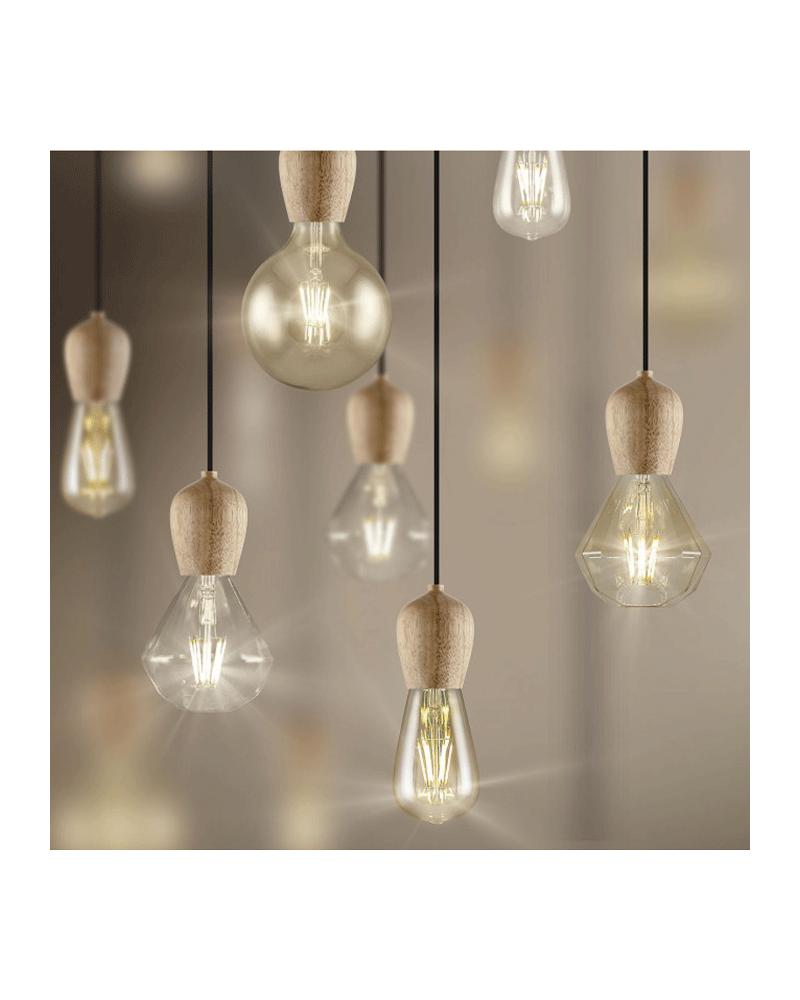 Original wooden ceiling lamp, ideal for LED bulbs with filament. This piece provides an industrial style and design. Bulb not included.