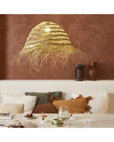 Simple and modern ceiling lamp with patterned lines on the lampshade.