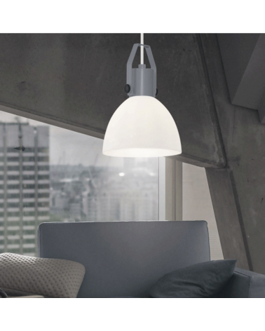 Ceiling lamp with white lampshade gray support 43cm industrial bell style E27