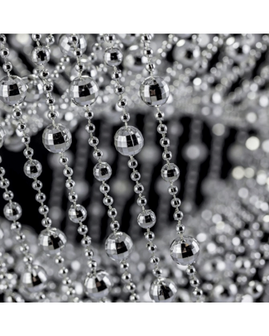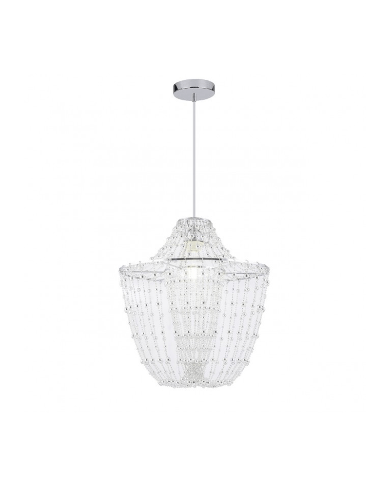 Elegant style ceiling lamp with chrome colored acrylic beads. Ideal for rooms with high ceilings, it provides distinction and elegance.