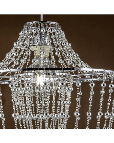 Chain ceiling lamp with acrylic and metal beads chrome finish E27 55cm