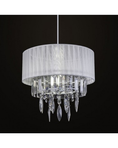 Chain ceiling lamp with fabric lampshade with acrylic tears and metal chrome finish 1 X 60W E-27 35cm