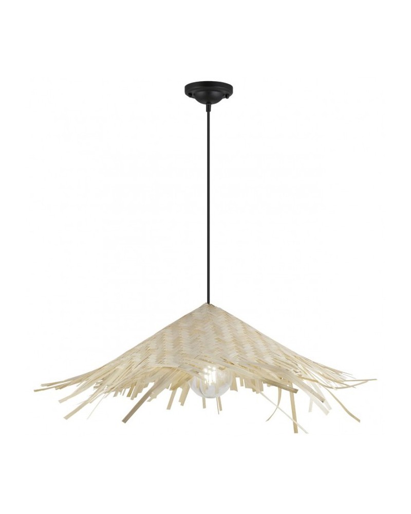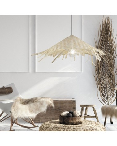 Natural bamboo ceiling lamp in the shape of a parasol or parasol. Ideal for open spaces and places that seek sensations of warmth and rest.