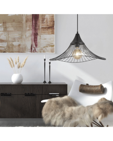 Pendant Ceiling lamp 50cm corrugated lampshade black metal grid E27