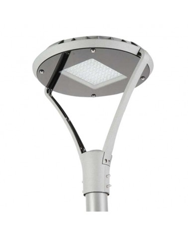 Modern, vandal-proof, ambient lighting and signaling lamp for vertical posts, perfect for illuminating private spaces and residential areas. It has a 40W output and emits 5,200 lumens. It features a Lumileds SMD3030 panel and a dimmable 0-10V driver, offering a long lifespan of 100,000 hours. Its light gray color is also available. Only a few units left! Suitable for posts between 76 and 60 mm.