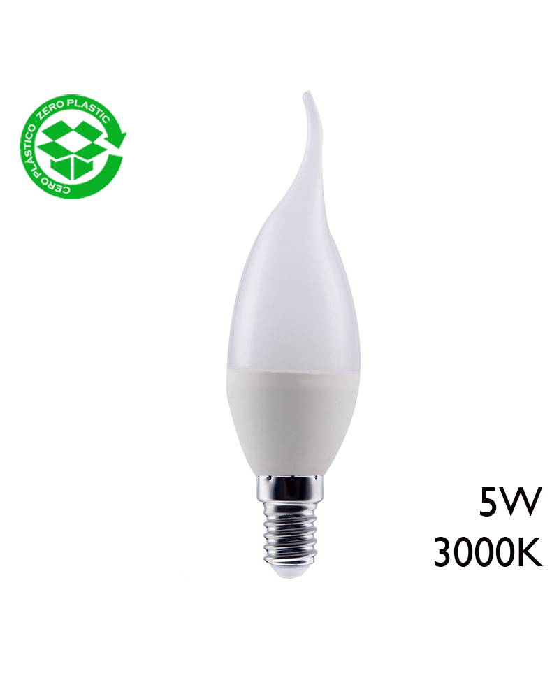 5W E14 LED Twisted Tip Candle Bulb. Warm light 3000K. A+ efficiency. Long life 25.000 hours.