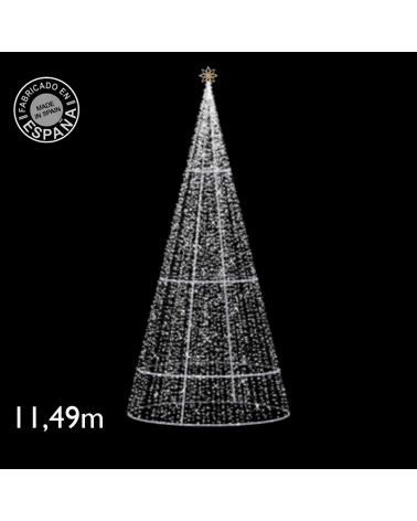 Elegant 9.11 meter tall LED cone with star, adorned with snowflakes. Illuminated by leds with cool light light. Structure in aluminum alloy 6063 and temper T5. Suitable for outdoor use IP65. Being LED technology, it only consumes 1091W.