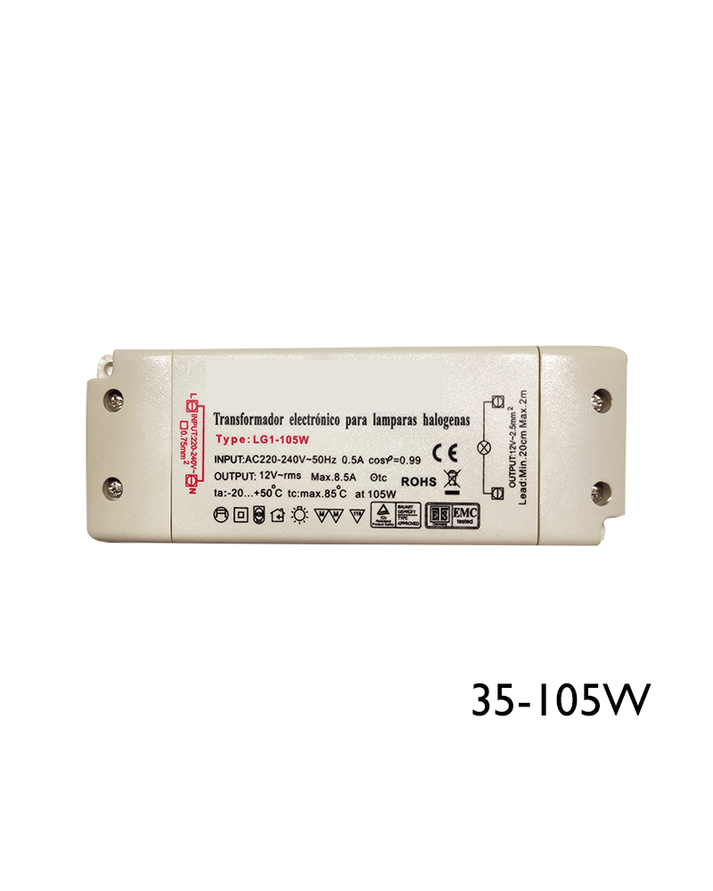Dimmable transformer 35-105W