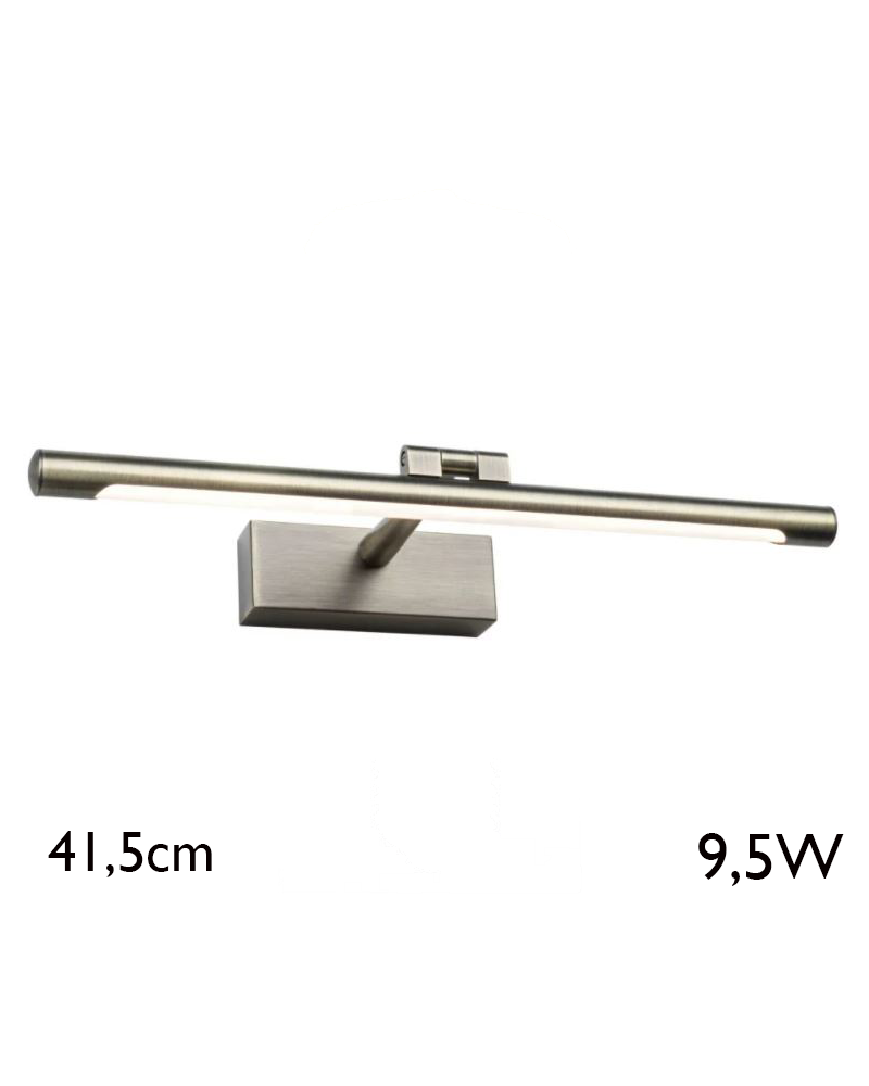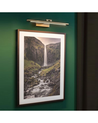 Picture lighting 41.5 cm LED 9.5W 3000K with an angle of 120º. Made of metal and finished in brass. It is mounted directly on the image and is adjusted by means of a joint for perfect lighting. Ideal for uniform illumination of paintings and works of art, using a warm light.