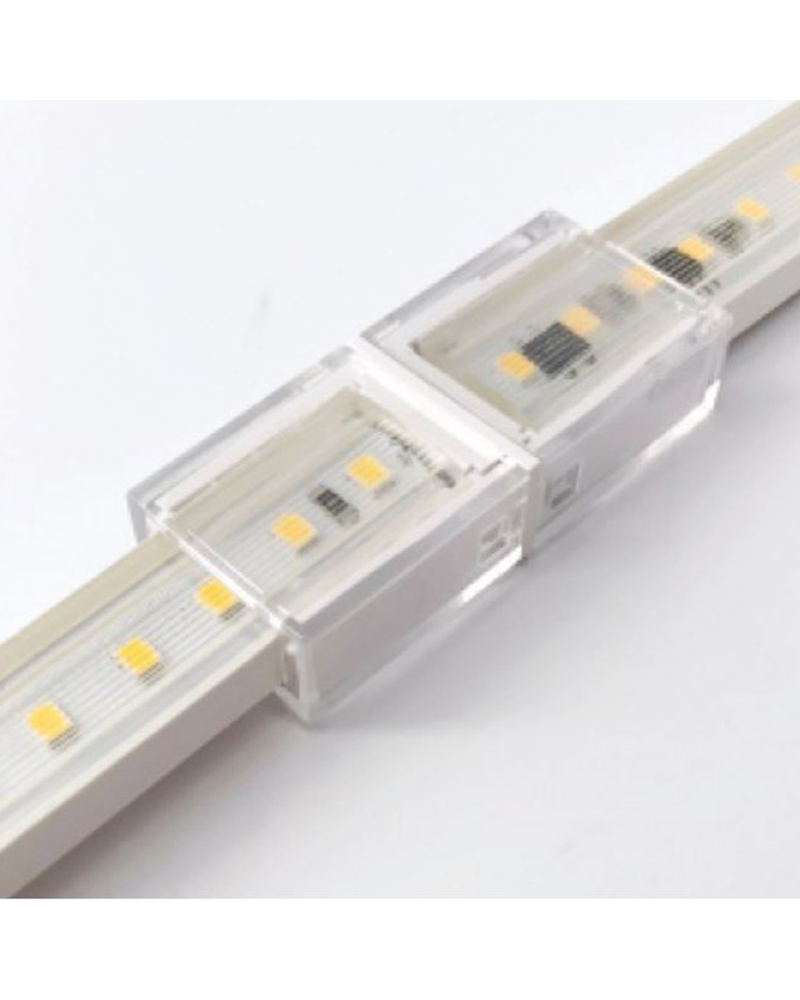 Power connector to connect two 230V IP40 LED strips straight. In order for the LED strip to preserve its IP65, it is necessary to seal the connections with silicone.