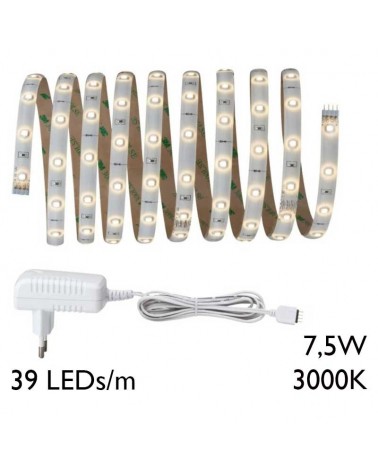 The 3 meter LED strip, expandable to 5 metres, is a versatile and efficient lighting solution that offers brilliant illumination in any space. With 39 LEDs/meter, this strip emits different color tones, providing 550 lumens of brightness with a consumption of only 17.8W.