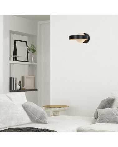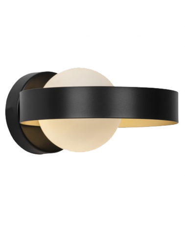 Original vintage style wall light. With a round base made of metal with a black and gold finish with a glass shade. Available same model ceiling and floor lamp.