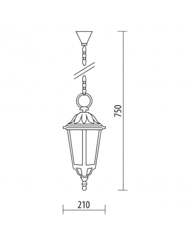 Outdoor hanging lamp lantern IP44 E27 max 75cms Ø 21cms material resistant to corrosion and UV