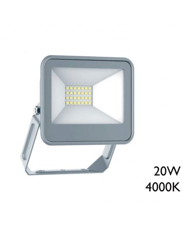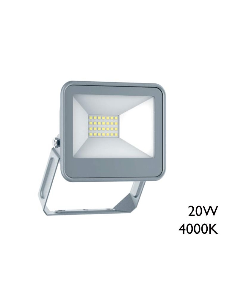 Outdoor spotlight 20W warm light 3000K IP65. High brightness and small dimensions. Aluminum body and transparent tempered glass diffuser. Color rendering index: >80. Class I. Duration of 25,000 hours.