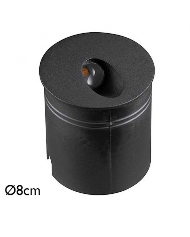Recessed signal light designed for indoor and outdoor use with IP65 protection with 3W power, 3000K warm light. Made of aluminum and polycarbonate available in dark grey, black and sand white finishes with a round shape.