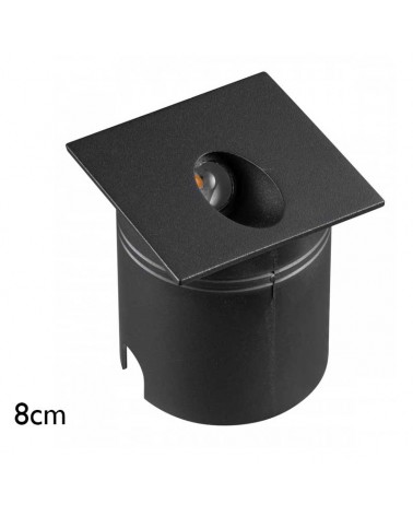 Recessed signal light designed for indoor and outdoor use with IP65 protection with 3W power, 3000K warm light. Made of aluminum and polycarbonate available in dark grey, black and sand white finishes with a square shape.