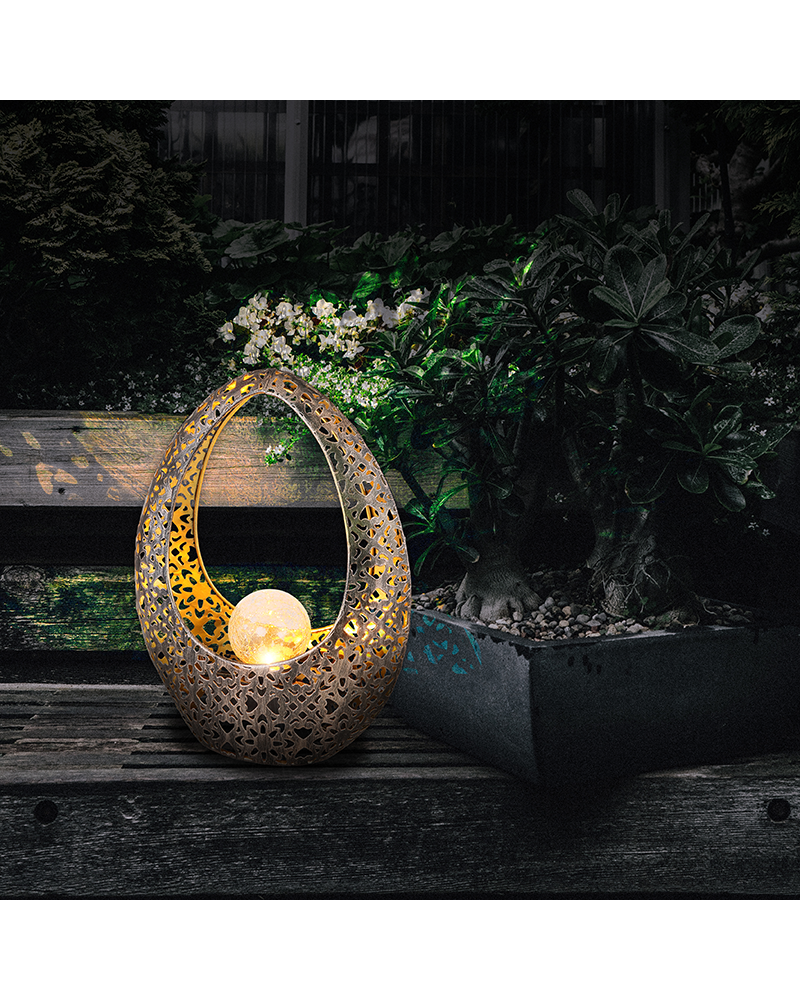 With a height of 27.5cm, this solar lamp made of high-quality metal. Its carefully crafted design combines clean lines and smooth curves, creating a sophisticated look to any decorating style. Once charged, the lamp turns on automatically, providing a pleasant 3000K light that creates a warm and welcoming atmosphere.