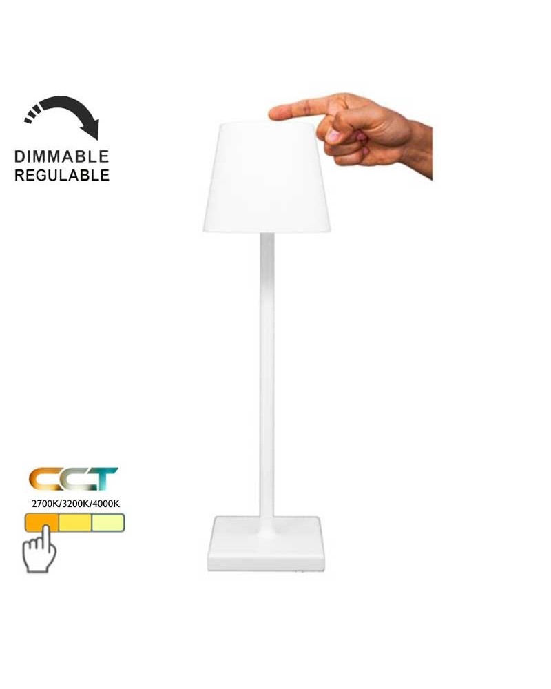 Equipped with the innovative CCT Switch technology, it allows the selection of the desired color temperature between 2700K, 3200K and 4000K. Whether to create a warm and welcoming atmosphere or for brighter and sharper lighting. Made of aluminum available in white, black and Corten finish. With touch ignition on the top of the lamp for easy on and off. Perfect for creating cozy rooms on restaurant tables, terraces, hotels, etc.