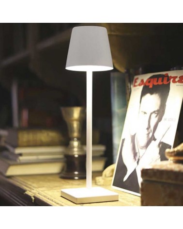 Portable table lamp with built-in 3.5W LED. 2600mAh USB-C 5V type rechargeable battery in 4-6 hours, so you don't have to use cables and take it wherever you want. Suitable for indoor and outdoor use with IP54.