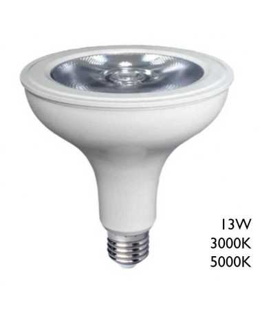 122mm bulb. Green PAR38 LED IP65 15W E27 30º 25000h. white body