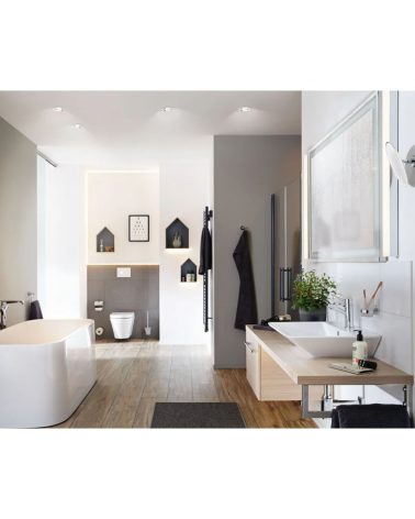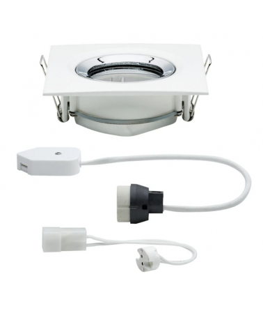 Square outdoor downlight, suitable for illuminating bathrooms, house entrances, garages, canopies, etc. Recessed spotlights with IP65 protection are specially protected from any contact with water and, therefore, are ideal for installation in humid places. Modern in design, they are integrated into all styles of decoration. They can be easily clamped on the inside of the mounting ring, without the need for snap rings. With tilting points for excellent lighting. The lamp can be easily attached without a retaining ring. For GU10 and GU5.3 included.