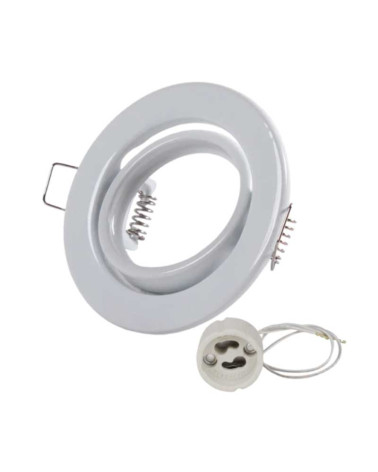 Tiltable recessed porthole downlight ring available in white, black and nickel with measurements of Ø89x27 millimeters, designed for the installation of a GU10 dichroic LED bulb. Includes lamp holder. Cut measurement: Ø68 millimeters.