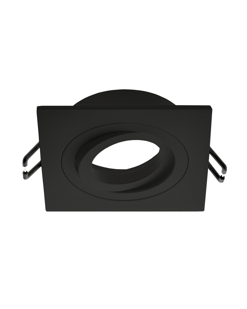 Square tilting recessed ring in white, black and nickel with measurements of Ø92x92x28 millimeters, designed for the installation of a GU10 dichroic LED bulb. Includes lamp holder. Cut measurement: Ø80 millimeters. The black model supports a 75 cm hole