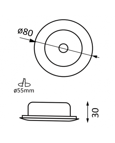 Ring or bull's eye downlight for fixed recessed spot available in white, black or nickel finish. Made of aluminum. With measurements of Ø92x28 millimeters, designed for the installation of a GU10 dichroic LED bulb. Includes lamp holder. Cut measurement: Ø80 millimeters.