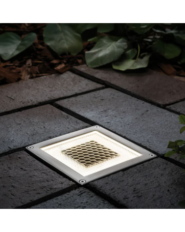 Very resistant 0.24W IP67 Solar LED downlight for ground and made of stainless steel, being resistant to corrosion. It can support up to 500Kg of weight. With measures of 10x10 cm and a 100mm diameter recessed hole. Thanks to solar technology, you do not need a power outlet for installation. The rechargeable and replaceable batteries are charged by sunlight during the day and an orientation light that functions as a function light is activated at dusk. It is protected against the ingress of water and stainless steel due to the IP67 protection, fully protected for outdoor walkable areas. Charging time of 6-8 hours of sunlight, provides 8-10 hours of light.