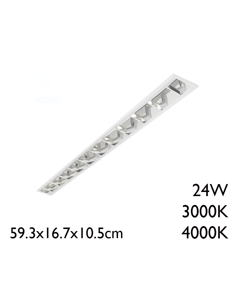 White finished steel recessed LED panel and aluminum reflector 24W 59,3x 16,7cm + 50,000h
