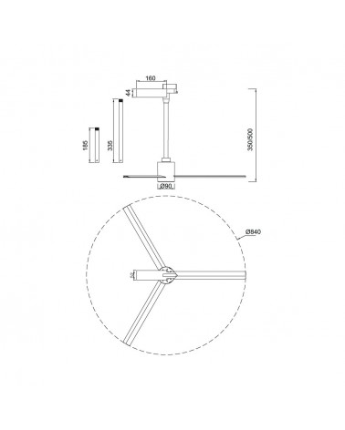 The white ceiling fan for a three-phase track is a modern and functional piece, perfect for cooling and decorating any establishment with the lowest possible electrical consumption. With a diameter of Ø84cm, a ventilation power of up to 7W. Available with two arms that allow the track distance to be changed from 18.5 to 33.56 and thus modify the height.