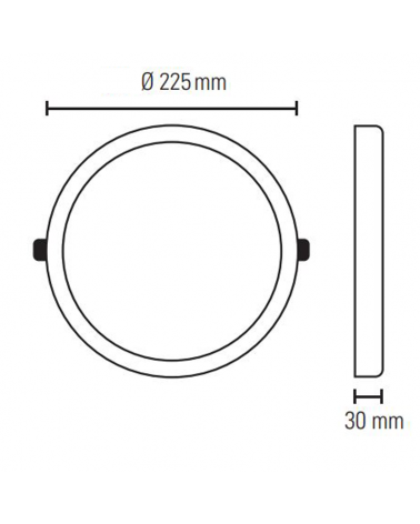 Surface LED downlights are an ideal solution for ceiling installation. With an opening angle of 100º. With a diameter of 22.5cm and a power of 18W, these LED downlights offer efficient and long-lasting lighting. They are available in two color temperature options, 4000K neutral light or 6000K daylight with an output of 1550 lumens.