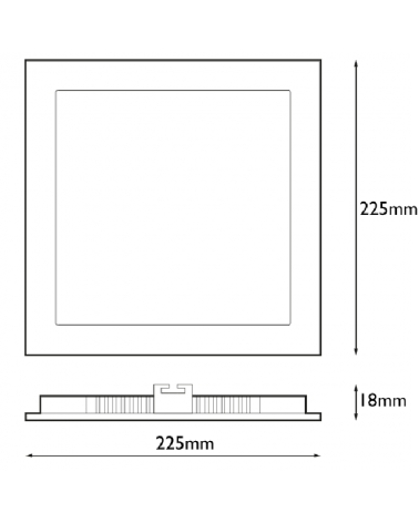 Square recessed LED downlight 18W 22.50x22.50 cm, grey. PCB module made of aluminum to favor temperature dissipation. Internal polycarbonate plate to improve light reflection. Perimeter light. - Finish: grey RAL 9006. - Measurements: 225x225mm, height 18mm. - Cutting hole: 205x205mm. - Light angle 120º. Immediate ignition. - Material: aluminum body, polystyrene diffuser. - Energy class: A+. Save on your electricity bill. - Long useful life (more than 35,000 hours).