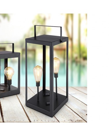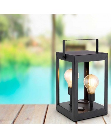 Add a touch of sleek modernity to your outdoor space with this Rectangular Black Solar Lantern with Handle. With a compact size of 14x14x28cm and two amber plastic and metal bulbs, this lamp is a versatile option that can be used as a table lamp or a floor lamp. It does not include a cap, the bulbs are fixed and cannot be changed.