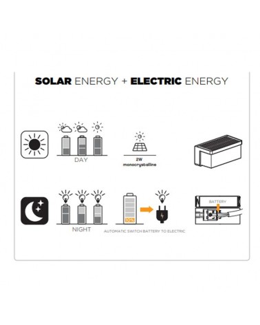 The wall light designed to provide effective lighting in outdoor spaces. Made of synthetic and PC, black finish and measuring 19.3 cm wide. This type of hybrid solar wall light combines solar technology with the possibility of connecting to power. In this way, the light intensity is never lost, and can be left on all night.