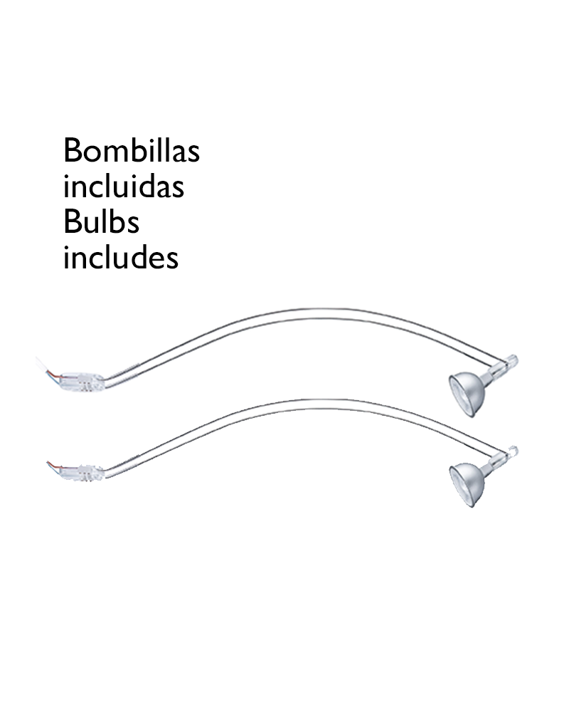 This lighting for furniture, shelves or cabinets highlights the beauty of its content. It is installed directly on the furniture and the spotlights can be adjusted individually, guaranteeing optimal lighting. Appropriate light bulbs using energy efficient LED technology are included with the product. Color temperature: 2700K - Warm White. Matching transformer included. Switch included. It can be installed to turn on the light automatically when the door is opened and off again when it is closed,