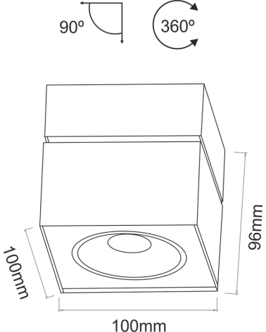 Cube wall and ceiling spotlight 10cm grey colour LED 15W 90º tilting aluminum 3000K 1255 Lm. 40º