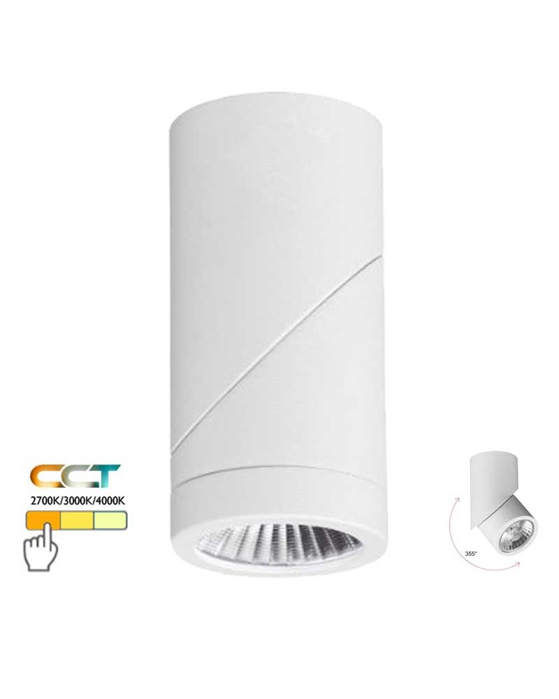 Cylinder wall and ceiling spotlight 6cm white LED 8W Aluminum tilting 355º CCT Switch 2700K/3000K/4000K