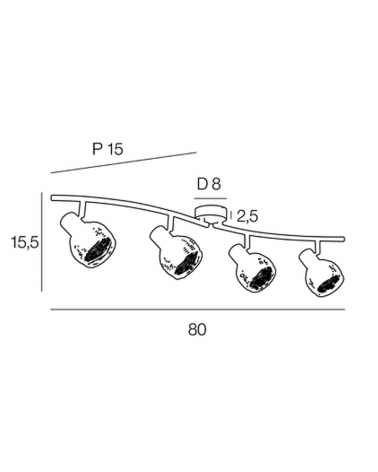 4 spotlight strip 80cm in white metal and rattan ball lampshade 40W E14