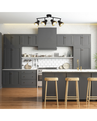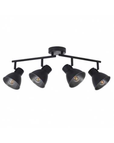 Strip with 4 industrial style spotlights. Made of metal and black finish. Adjustable spotlights to facilitate the positioning of the light and articulated arms. Perfect for the living room, kitchen or bedroom.