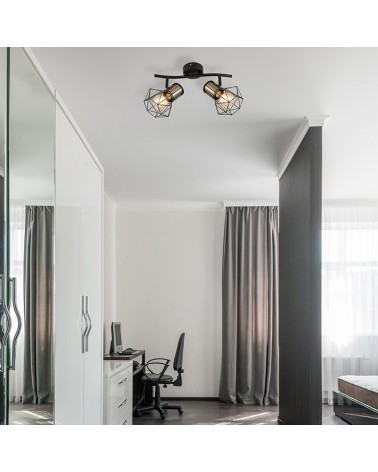 Ceiling lamp with 2 spotlights vintage industrial style black brass finish industrial style black metal shade