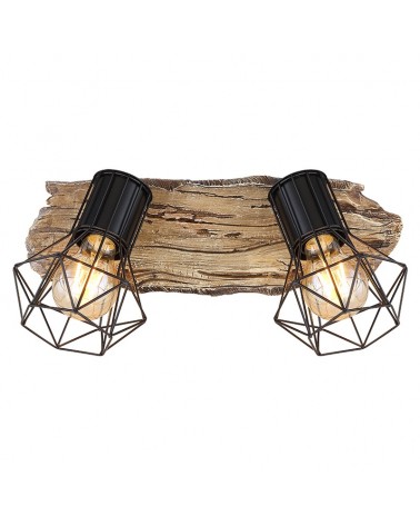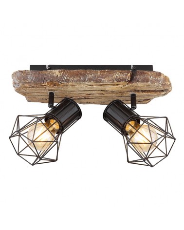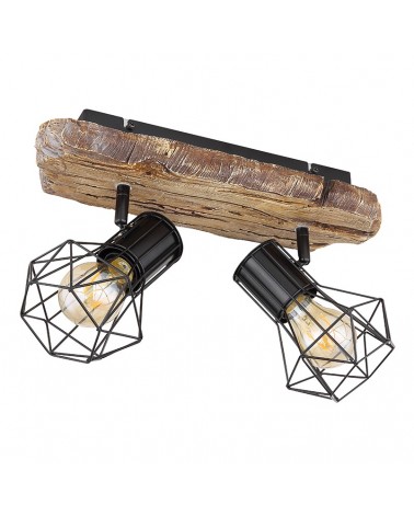 Industrial vintage ceiling strip with 2 oscillating spotlights, black lampholder finish, imitation wood base, 2xE27 60W