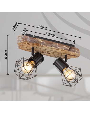 The industrial vintage ceiling lamp with 2 oscillating spotlights is the perfect complement to illuminate your spaces with style. Its leather lamp holder finish and wood-finished plastic base, together with the two 40W E27 light bulbs each, create a cozy and elegant atmosphere.