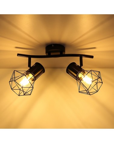 The industrial vintage ceiling lamp with 2 oscillating spotlights is the perfect complement to illuminate your spaces with style. Its black lamp holder finish, together with the two 40W E27 light bulbs each, create a cozy and elegant atmosphere.