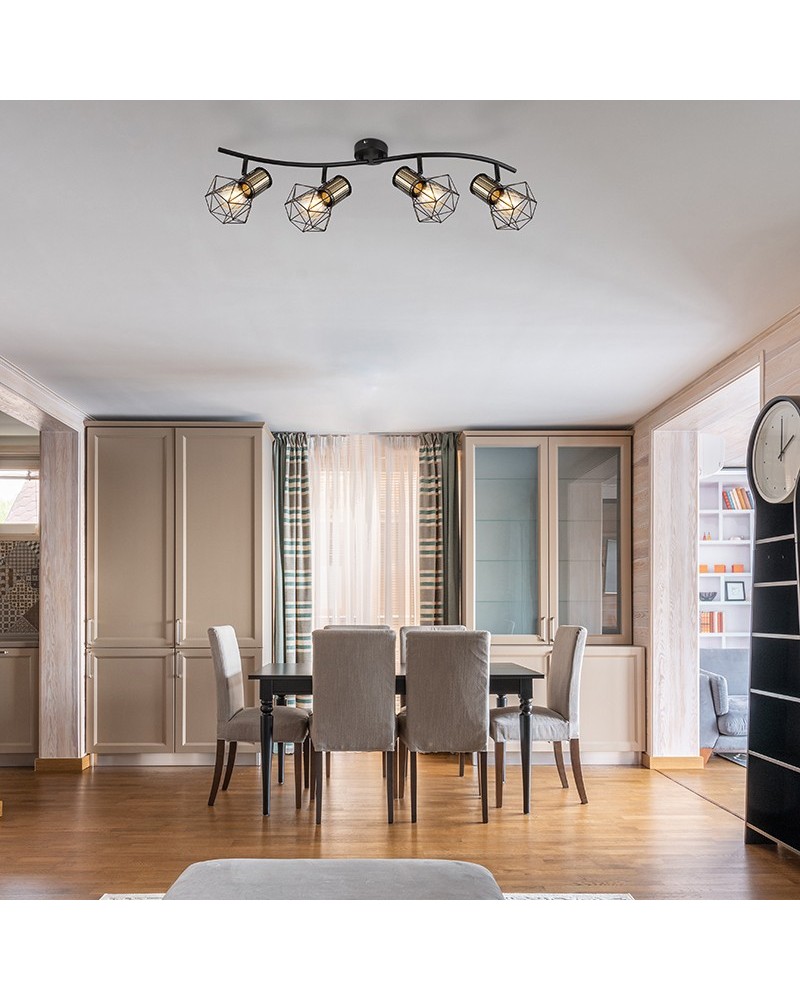 This vintage industrial ceiling lamp is the perfect option for those who are looking for a high-quality ceiling lamp that will not only illuminate but also decorate their home. If you are looking for a vintage or industrial ceiling light, look no further. This 4-spot ceiling strip is the perfect choice for any lover of vintage-style decoration. The industrial ceiling lamp in brass color has an industrial design that adapts to any space, from a living room to a bedroom. With its vintage style and industrial touch, this ceiling light is perfect for any modern home that wants to add a touch of industrial style.