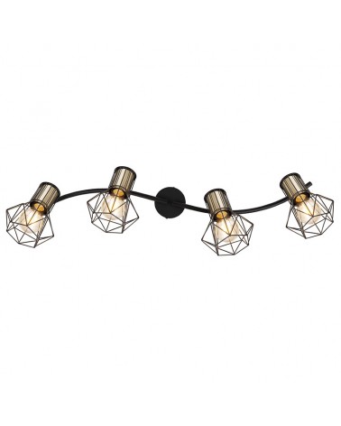 Ceiling lamp with 4 spotlights vintage industrial style black brass finish industrial style black metal shade