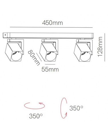 Strip with 3 adjustable spotlights, a versatile and powerful lighting solution designed to highlight specific areas with precision and effectiveness. Measuring 45cm wide and made from aluminium, it provides a solid and durable base for use in a variety of environments.