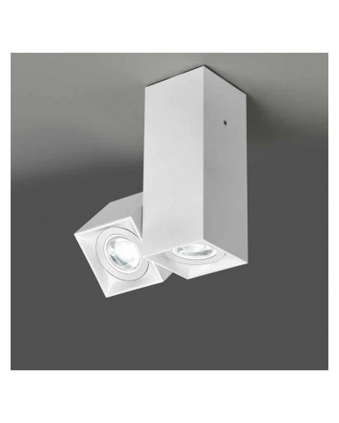 Wall or adjustable spotlight in the shape of a cube, available in Black, White and similar Aluminum RAL 9006 MATE with GU10 socket can be used with all types of dichroic bulbs. Body made of extruded aluminium. Geometry and style for any environment, it can be applied both on the ceiling and on the wall. Made in Spain.