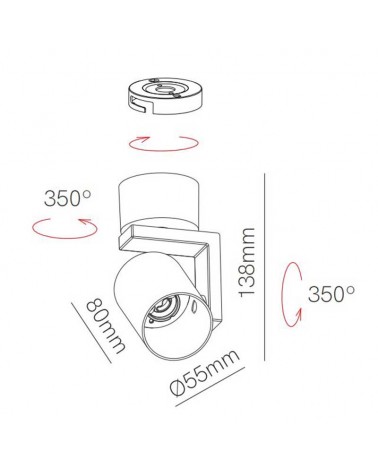 Made of aluminum and equipped with a GU10 socket. Its 350º swivel and rotation capacity allows you to direct the light where it is most needed. Available in white or black finish, this spotlight easily adapts to any decoration style and environment. The bulb is not included, giving you the freedom to choose the bulb that best suits your specific lighting needs and preferences.